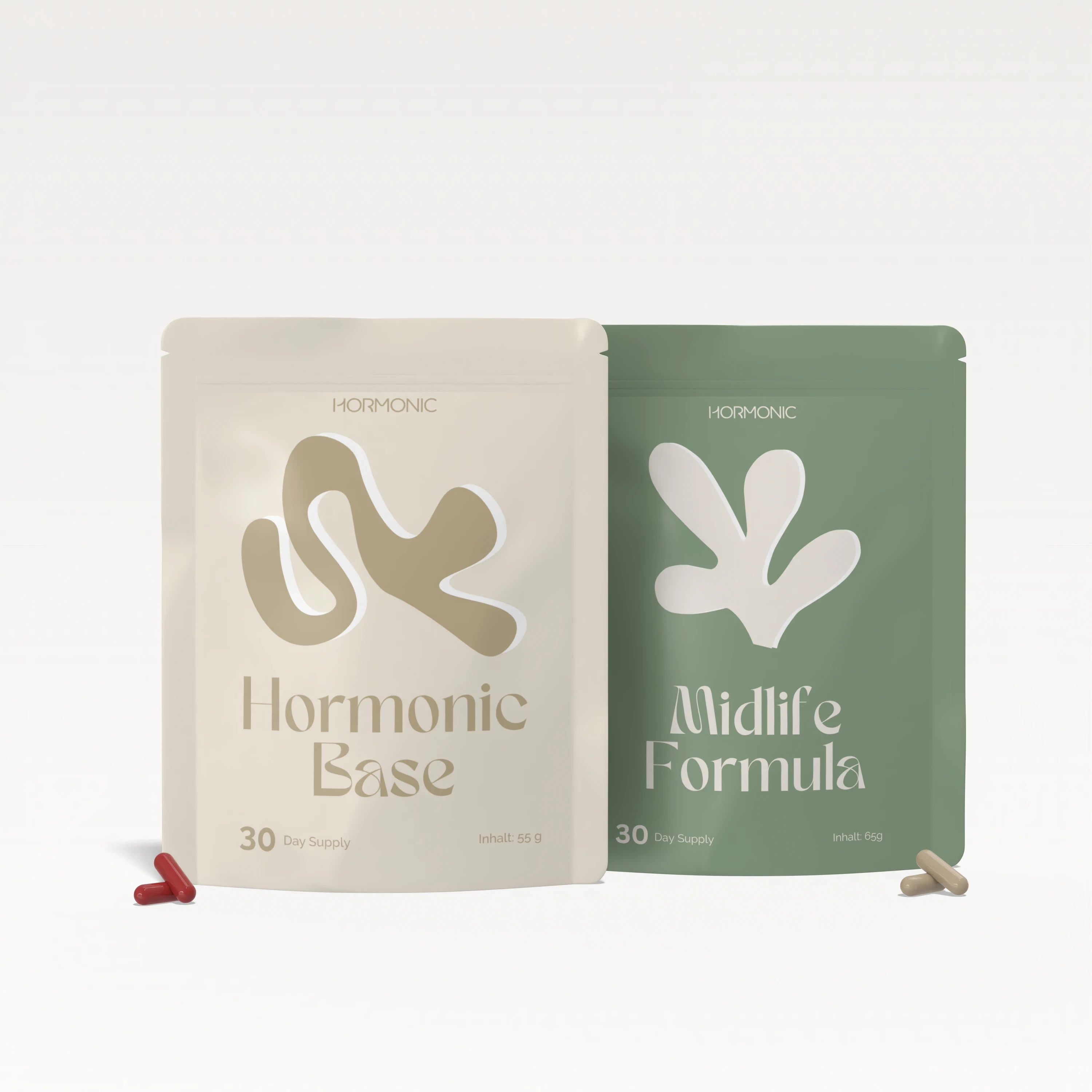 Hormonic Supplements sind darauf ausgelegt, den Körper in und die weibliche Hormonbalance gezielt zu unterstützen. Während das Hormonic Base Supplement eine gesunde hormonelle Basis mit 16 essentiellen Wirkstoffen unterstützt, ergänzt die Midlife Formula ausgewählte Mikronährstoffen und Pflanzenstoffe die in der (Peri-)Menopause relevant sind. Hormonic Supplements ersetzen keine medizinische Behandlung, können jedoch physiologische Prozesse unterstützen, die in hormonellen Übergangsphasen besonders gefordert sind – etwa das Nervensystem, den Energiestoffwechsel oder die Stressverarbeitung.